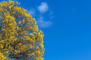 Reconhecido como símbolo nacional da flora brasileira, o ipê-amarelo floresce entre o final do inverno e o início da primavera, cobrindo sua copa com uma explosão de flores amarelas antes de renovar as folhas. Suas raízes profundas e sistema de crescimento vertical ajudam-na a resistir calor e estiagens. Além disso, é amplamente utilizada na arborização urbana justamente pelo baixo impacto na infraestrutura urbana.
